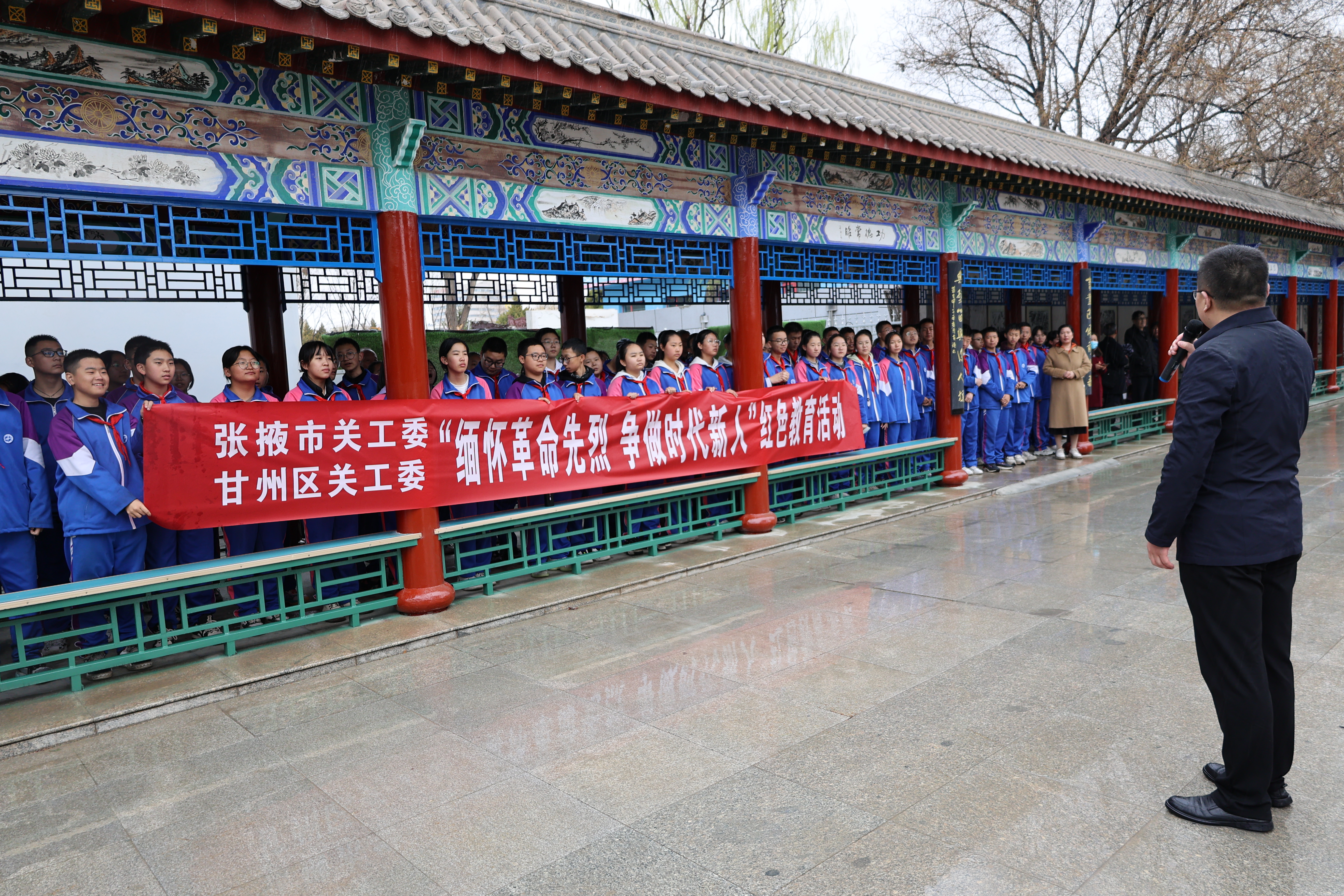 活动伴随着蒙蒙细雨,在庄严的国歌声中拉开序幕,全体人员在高金城烈士纪念碑前,整齐列队,向革命英烈敬献花篮,深切缅怀先辈们的丰功伟绩,凝聚奋进力量。市委党史研究室红色教育宣讲员、关心下一代工作者何玉军为广大青少年作了题为《弘扬革命精神,争做新时代好少年》的红色教育宣讲,他从忠诚理想,坚定信念;顾全大局,服从命令;团结一致,同仇敌忾;顽强不屈,艰苦奋斗;生命不息,战斗不止等五个方面讲述了红西路军征战河西的悲壮历程,用朴实的语言教育广大青少年要继承先烈遗志、树立远大理想、勇担新时代使命。广大青少年纷纷表示,今天的美好生活来之不易,我们一定要发扬光荣传统,继承革命烈士不怕困难、不畏艰险、英勇献身的精神,锐意进取、勤奋学习,以实际行动争做担当民族复兴大任的时代新人。