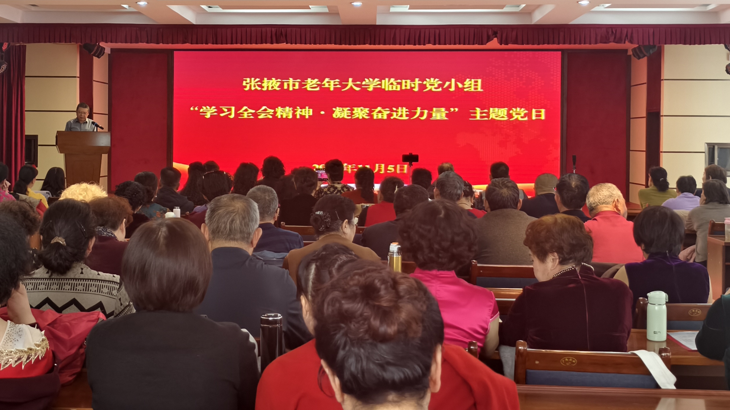 为深入学习贯彻党的二十届四中全会精神,进一步统一思想、凝聚共识,11月5日下午,市老年大学临时党小组开展“学习全会精神·凝聚奋进力量”主题党日活动。市老年大学校委会成员、临时党小组组长、副组长及全体学员党员等160多人参加。